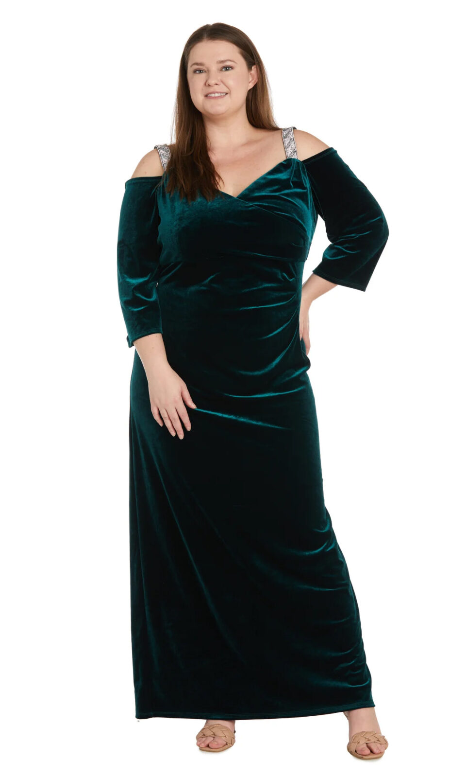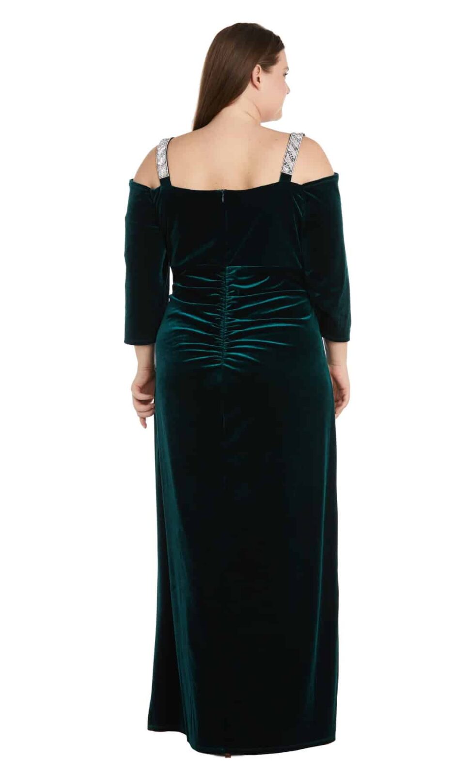 שמלת ערב מידות גדולות ירוקה קטיפה שרוול שלושת רבעי פתוח